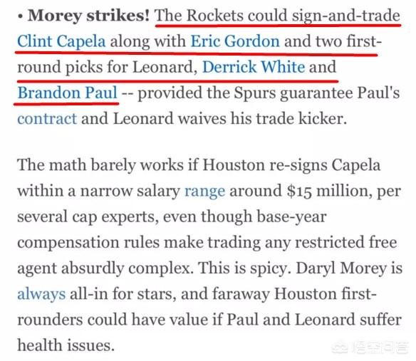 火箭队并不需要对自己的阵容进行大动作,如果能对自己的阵容不做大变化又捡到莱昂纳德,我相信莫雷也许有这个能力。