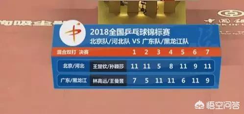 2018全国乒乓球锦标赛在辽宁鞍山进行,在混双决赛中,亚运会混双金牌组合王楚钦和孙颖莎4-3险胜林高远和王曼昱首次获得全国乒乓球锦标赛混双冠军,这是这两对组合连续第二场在决赛相遇。