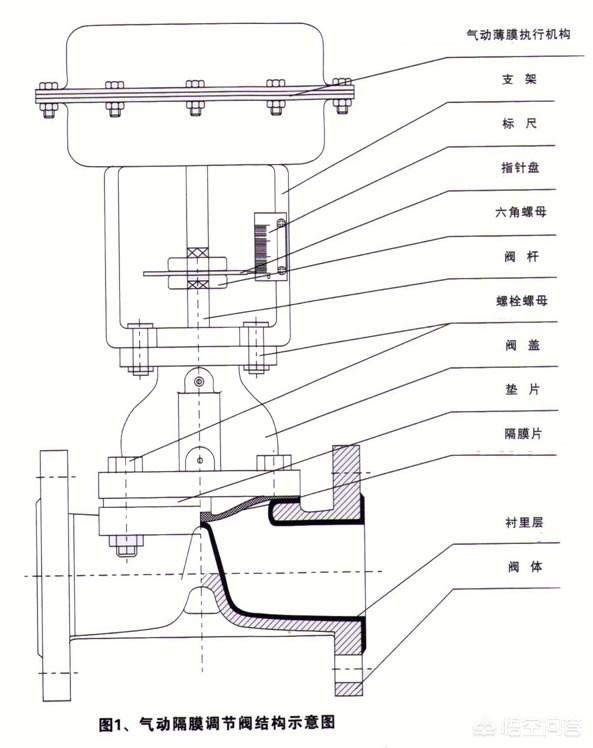 隔膜阀用耐腐蚀衬里的阀体和耐腐蚀隔膜代替阀芯组件,利用隔膜的移动起调节作用。隔膜阀的阀体材料采用铸铁、铸钢,或铸造不锈钢,并衬以各种耐腐蚀或耐磨材料、隔膜材料橡胶及聚四氟乙烯。衬里的隔膜耐腐蚀性能强,适用于强酸、强碱等强腐蚀性介质的调节。