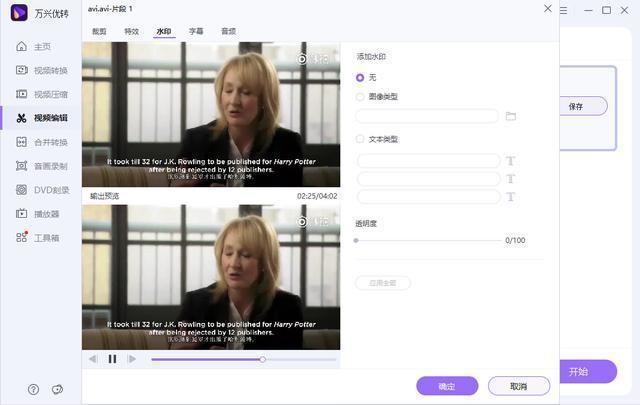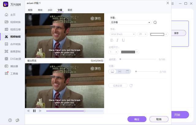 想要自定义专属视频,万兴优转允许你对视频自定义添加或者删除水印,包括文字水印和图片水印。同时你还可以将本地的字幕文件添加至视频当中,并且对字体的样式和颜色进行设置。