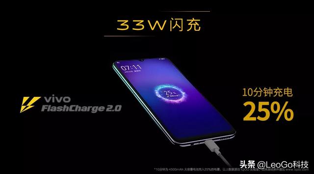 - 使用了4500mAh的电池,配合全新的33W的vivo Flash charge 2.0的闪充技术,会给手机带来更强的充电能力,并且在10分钟充电25%左右。
