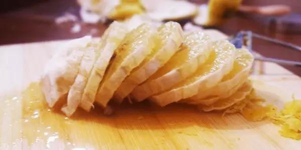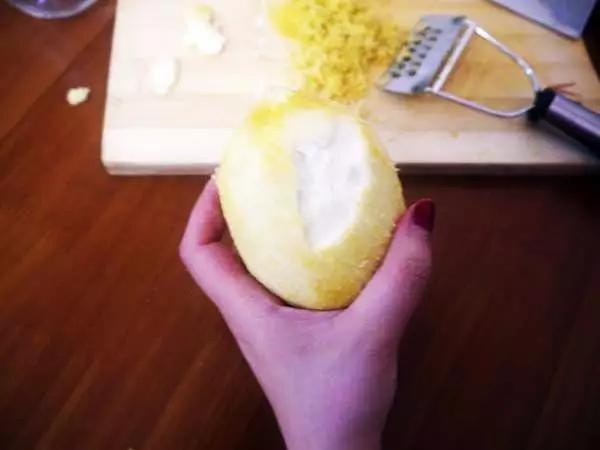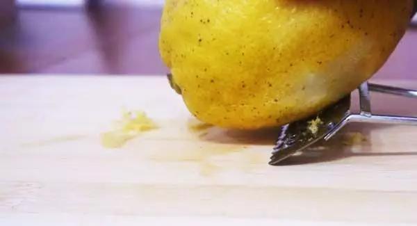 柠檬表层被削去之后,中间有一层白色的膜,这层白膜,就是柠檬苦味的来源,所以要保持柠檬的酸味和清香,要将这层白膜撕掉↓