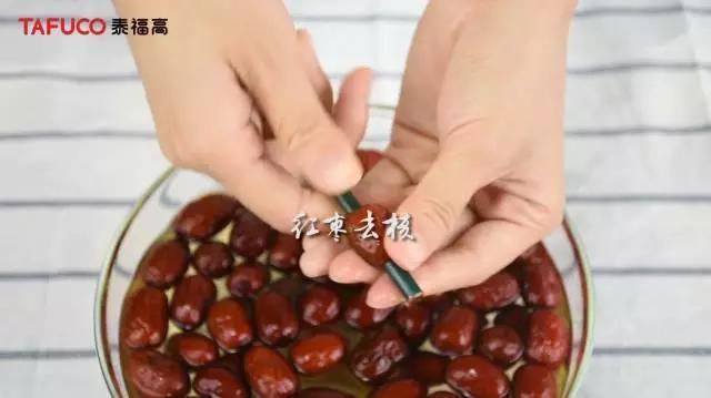 完全泡胀之后,枣核会变得很松,这时我们只需要准备一根吸管就可以轻松去除哦~