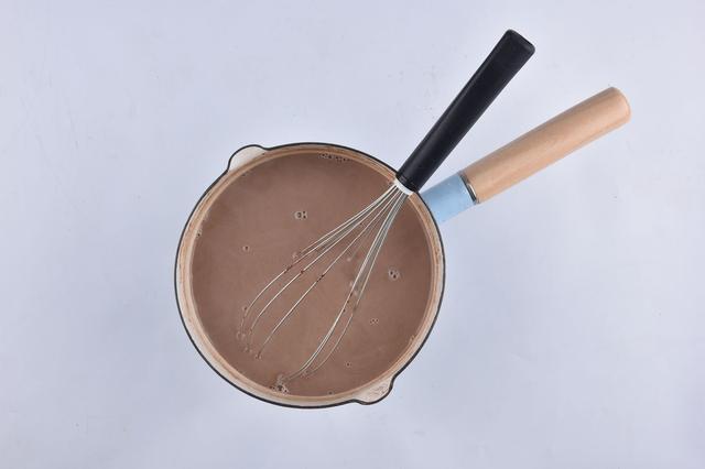 (3)奶油奶酪15g,淡奶油60g,糖1g,少量牛奶,按顺序放入,打蛋器打匀。