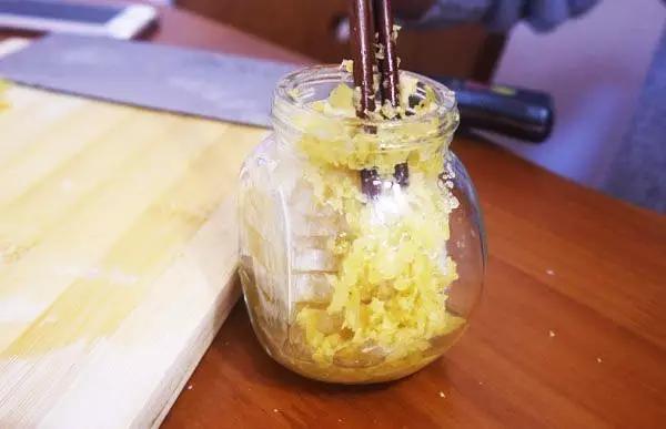 (5) 熬好凉后放入500克蜂蜜搅拌均匀。
