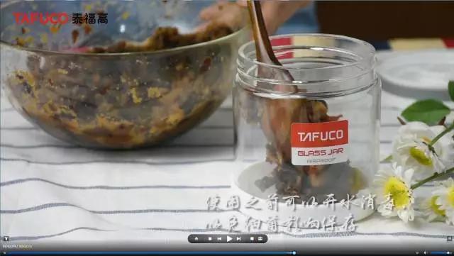 第三步:封存放凉的枣泥,就可以进入最后的步骤了。温馨提示,密封罐在使用前先用开水进行消毒,以免细菌影响保存哦。