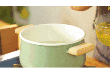 3.混合加热,沿着锅边有小气泡冒起就可以了,不要沸腾