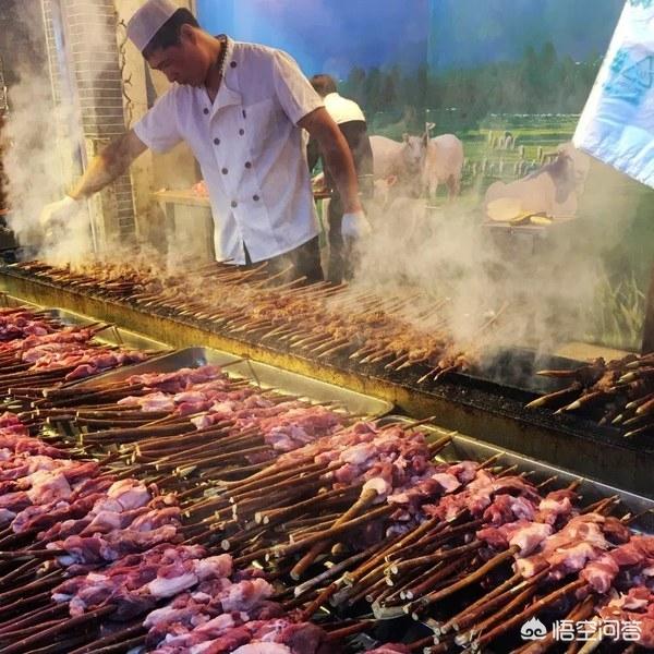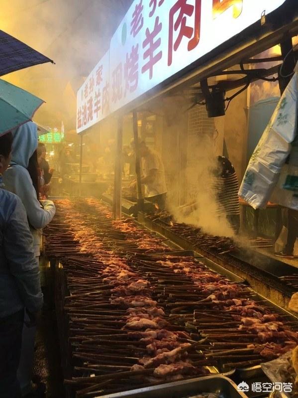 炒鸡诱人的大羊肉串儿,10元一串~~大家都是撑着伞排着队等着吃的节奏~~~