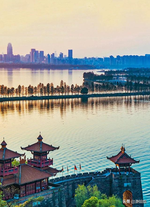 武汉全球最安全的城市,水筑成的城墙,无处不在。武汉2千多平方公里的水面超万公里水岸线构建大武汉坚不可摧的安全长城。武昌西北两面宽阔的长江,东南临如海般的大湖,武昌最南端,鲁湖水面80平方公里,斧头湖120平方公里,梁子湖400平方公里,三大湖由西向东,又由南向北与西北两面的长江将武昌合围而城,组成武昌第一道安全防线,任何敌人都难以逃离武昌大江大湖这一天然长城围成的天罗地网。武昌中心城区还有第二道长城,即由47平方公里的汤逊湖,33平方公里的东湖,15平方公里的严西湖,7平方公里的南湖,8平方公里的黄家湖与长江岸线为武昌城市中心构建第二道水上安全长城。武昌城区还有无数小湖泊构建市民第三道安全防线,如沙湖,杨春湖,晒湖,野芷湖青菱湖等,感觉生活在由层层水域守卫的武昌城中,感觉十二分的安全。而武昌只是整个武汉的宿影。武汉长江以北,更有数十公里的汉江岸线,又有100多个湖泊层层围成汉口汉阳水上长城。更值一提的是汉口还有两道超3米高环形人工防洪大堤长城,即环汉口老城张公堤森林绿道3O公里及汉江15公里防洪大堤绿道和15公里长江防洪大堤江滩绿道合围而成,组成汉口第一道人工安全长城。由105公里东西湖大堤与长江汉江大堤构建近150公里长人工大堤绿道长城成为汉口第二道人工安全长城,再加上超百座湖泊构建的江北水上防线,使武汉成为全球最安全的城市,武汉一座真正用城墙围成的世界超级大城。
