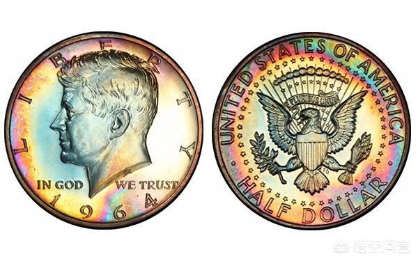 这枚银币的表面呈现出五颜六色,典型的硫化作用。