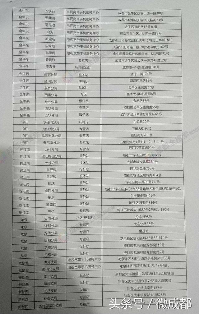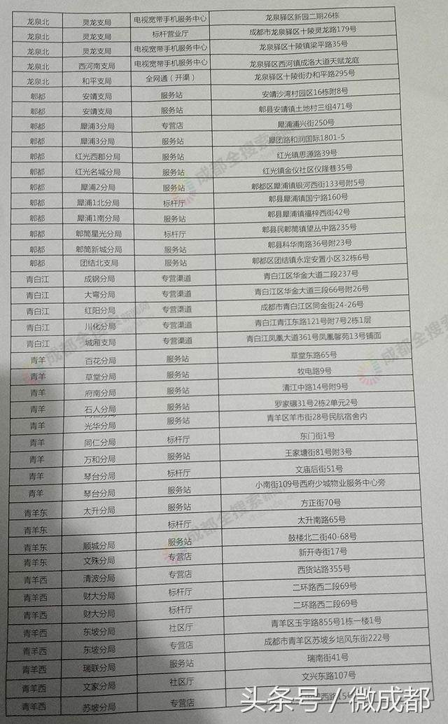 2018年3月31日后,成都艾普宽带将不再提供网络服务,现有用户将陆续转移至中国电信成都分公司网络,那么,在哪些电信营业厅可以查询和办理转移事项呢?