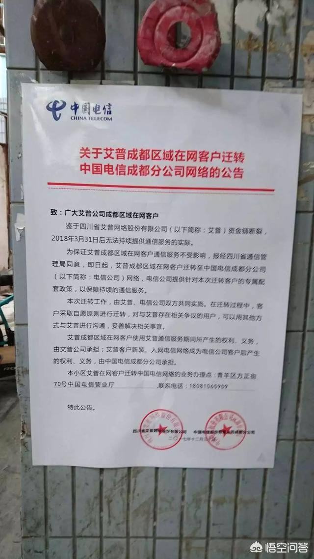 为保证艾普成都区域在网客户通信服务不受影响,报经四川省通信管理局同意,即日起,艾普成都区域在网客户迁转至中国电信成都分公司(以下简称:电信公司)网络,电信公司提供针对本次迁转客户的专属配套政策,以保障持续的通信服务。
