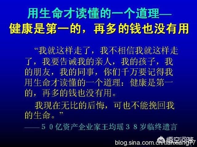 人生就是一个轮回,你所经历的一切都会传给你的下一代。对我来说,不管未来社会发展到什么地步,健康才是最重要的,有了健康你才有奋斗的资本,才有去各地旅游的动力,才有陪伴孩子玩耍的力量。