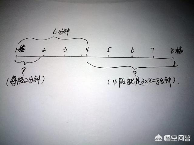 一个人上楼梯,一楼到四楼用了六分钟问四楼到八楼需要几分钟? 新农商网 更新于 2023-09-04 14:00:13 全部 1013 一个人上楼梯,一楼到四楼用了六分钟问四楼到八楼需要几分钟? 回复 共1条回复 我来回复 遥远的猪jiao 这个人很懒,什么都没有留下~ 评论 这道题式子应该这么列:6÷(4-1)×(8-4)=8分钟我初中的时候最喜欢几何,代数算起来太繁琐。所以对于这种题我是会习惯性把题目转换为图。假设一到八楼是一条线段,可以把它分七段,如图。一楼到四楼是三段6分钟,那么平均每份就是2分钟而四楼到八楼是四份,结果就是8分钟!谢谢关注,望采纳! 赞同 2018-01-19 20:32:26 0条评论 请 登录 或者 注册 后回复。