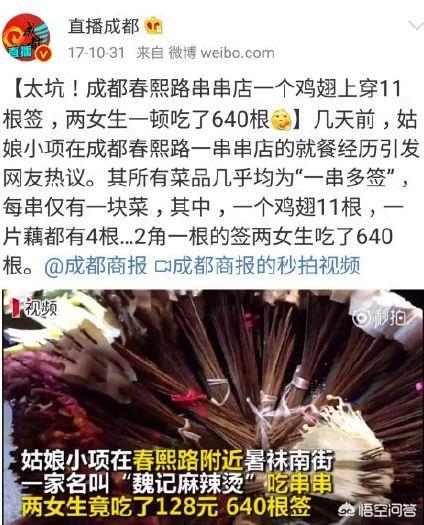 本来成都土特产能发扬光大是件好事情,但是去年年末,几个妹子在春熙路吃2角1串的串串香,竟然吃出了640串128元的战绩,简直吓死个人哦!
