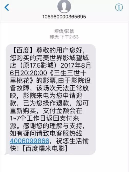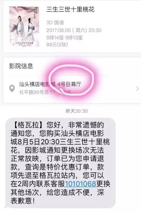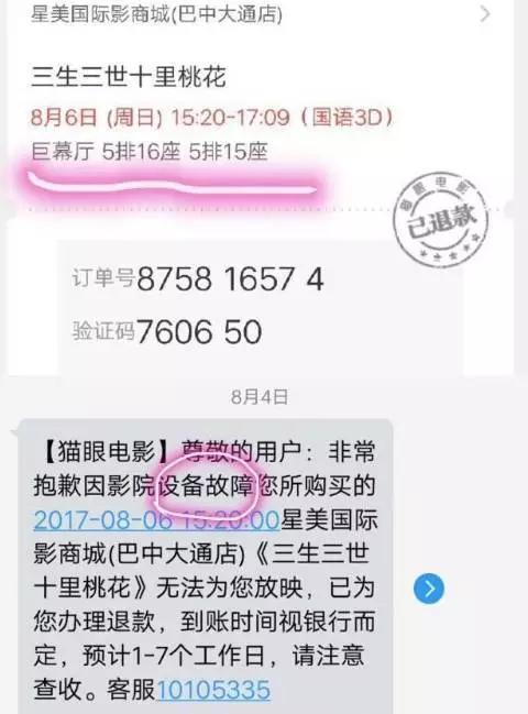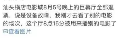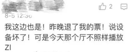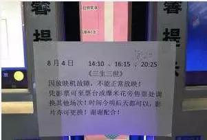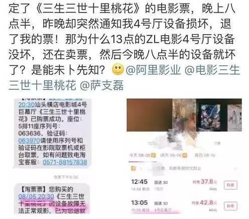 这是为啥呢?该不会是电影院跟《三生三世十里桃花》有仇吧?宁愿说设备坏了,退钱退票,把观众赶出去,然后再用“坏了的”设备继续播放其他电影。