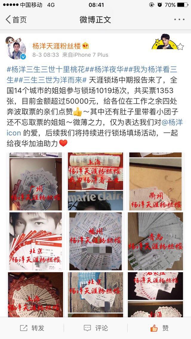四、致疯狂的粉丝:小范围锁场可以表达自己的爱,但是你把事情闹大了,就会影响电影院的收益,损害电影市场,还会抹黑自己的爱豆,这样真的不太好!再者说,你们那么不相信自己的偶像的表演实力吗?要是光有外表没有演技的偶像不支持也罢!每明星都有可能演过烂片,可能受到批评,但是走过这段旅程不就可以到达演技高峰吗?真正的真爱粉是指无论自己的偶像处在什么位置上都要去爱他,去帮助他在实力上前进,而不是旁门左道,也不是在明星火的时候支持,不火的时候就离开!
