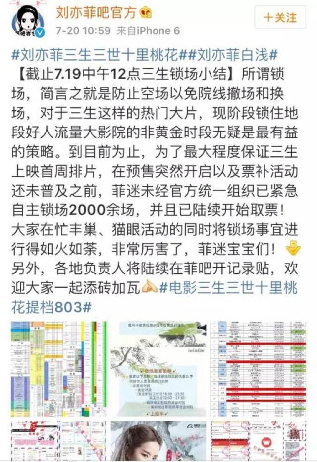 第三,什么是锁场?一个原本排好的场次如果没有人观看那这个放映就会取消,也可能改为放映其他电影,而三生三世这个大烂片今天一开始占据了差不多将近权全国电影百分之四十的场次,占了这么多排片,结果票房是战狼的一个零头,你让人家电影院老板咋办?一年都好不容易遇到一个卖座的片子,就等着这次填补平时的淡季嘞,一个个三生电影粉丝却做出了更恶毒的事。