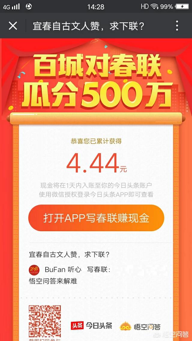 去头条搜索百城对春联题库,分享出去打开输入答案提交,就会有红包!我就是这么弄的!