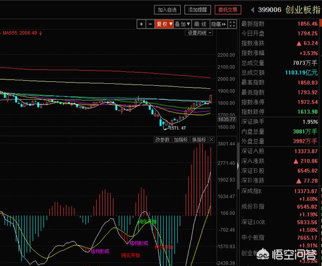 如果投资创业板股票基金,重点要研究创业板指数和投资标的的行业指数及指标股。从创业板的技术面看,经历了长期的连绵下跌后,最近出现了强劲的反弹,今天更是放量大涨成功突破年线,从趋势方面看创业板的短期向上趋势确立,因长期处于低位,创业板比主板更值得投资,而突破的背后,是估值的相对合理以及业绩的持续向好和支撑。但具体仓位不宜过重,毕竟大周期还没大的趋势改变,短期看还是属于超跌反弹,最多不要超过六成仓位。如果大的上升趋势确立,可以直接重仓。