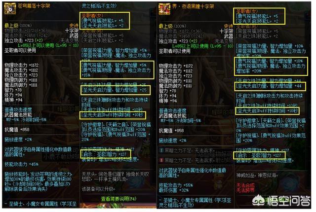 当前版本玩家使用的武器是苍穹幕落十字架,对奶妈来说属性是增加5级的勇气祝福,2级的圣光天启技能等级;勇气祝福的力量和智力加成+5%,三攻加成+15%;圣光天启的力量和智力加成+25点;启示:圣歌增加智力127点。