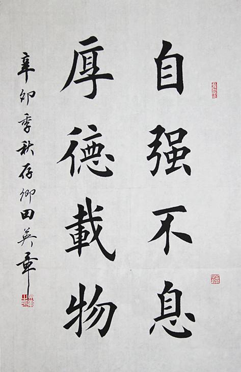 学习欧楷,田英章是成功的,而跟着它学习田楷的人,也有不少人同样获得了成功,如王丙申、夏梁、荆宵鹏等。虽说他们楷书都是一个路子,写的田楷几乎难以区分,没有自己的特色,除了田楷就是田楷,但却否认不了他们的成功,赚到了不少的银子。比之于其它学习别的书体,甚至于有的食不饱腹的人来说,强的太多了,毕竟人得活着。