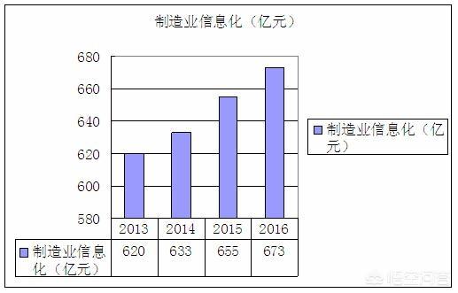 2013年,中国制造业信息化投资达620亿元,略有增长,同比增长率为0.8%。2015年,中国制造业信息化投资规模达到655亿元,同比增长3.4%。但是中国制造业中不同行业、不同规模的企业,信息化建设状况差距很大。石化、钢铁、汽车等行业集中度高企业的信息化建设较好,一些企业已基本具备了与国际同行接近的信息化水平;而纺织、轻工等行业,信息化建设水平较低。