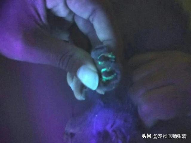 3.使用工具:伍德氏灯,这个工具特别好用,猫藓在此光线照射下会有绿光。那么是不是我家喵一得猫藓就要买这个工具吗?答案是否定的,首先如果你特别想买那另当别论,如果你家猫只有一处区域掉毛且其他区域也没摸出硬块那您可以不用购买。如果是多处建议购买自查,可以早发现其他隐藏真菌区域,早发现早治疗。不同情况有不同的治疗方案,接下来我们来聊聊如何治疗。