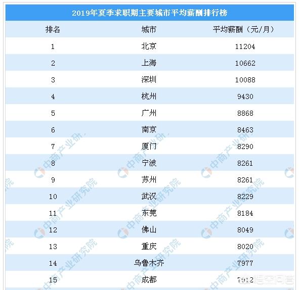 我们先来看一下2019年夏季求职期主要城市平均薪酬排行榜, 这是最新的关于城市薪酬水平的统计表,平均薪酬超过8452元/月。我想这个数据一定会让很多人觉得拖后腿,我们暂且不管这个数据的真假,不管这个数据统计来源于什么的群体,采用什么样的标准。我们可以认为,统计的37个城市,统计了类似的群体,采用了同样的标准。