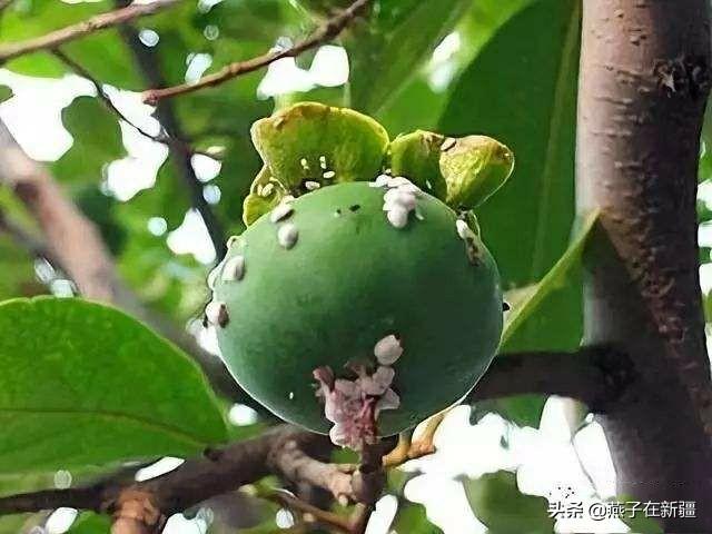 柿子通常在生长成熟时会有不少的白点,这其实是柿子树遭遇了柿绵蚧壳虫的侵害。