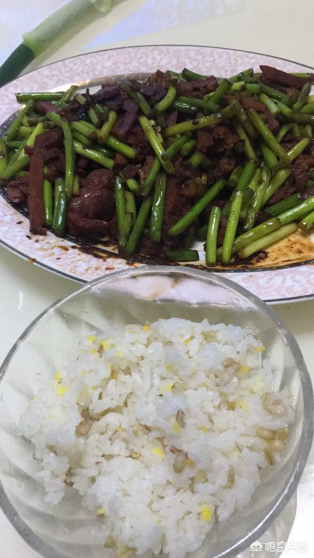 下图是自己做的,菜是蒜薹炒的酱牛肉,比较特殊,将牛肉放的时间久了,赶紧吃了。米饭里加了点杂粮,看着是不是很诱人,朋友们,欢迎来我的家乡-黑龙江。
