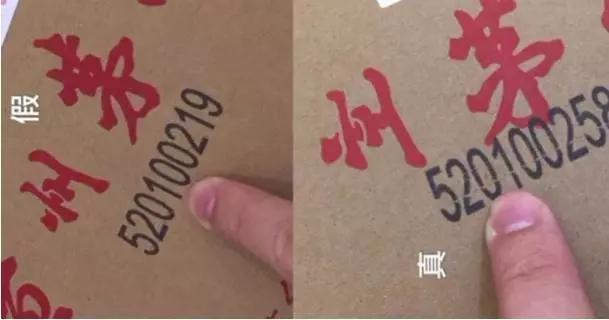 茅台厂家在生产的茅台酒的外箱编号是由喷码机喷上去的,数字有断连,而然假茅台的编号数字没有断连的。这一点,茅台厂家确实也是在仪器上下功夫,有意无意地为大家提供辨别真假的小技巧。