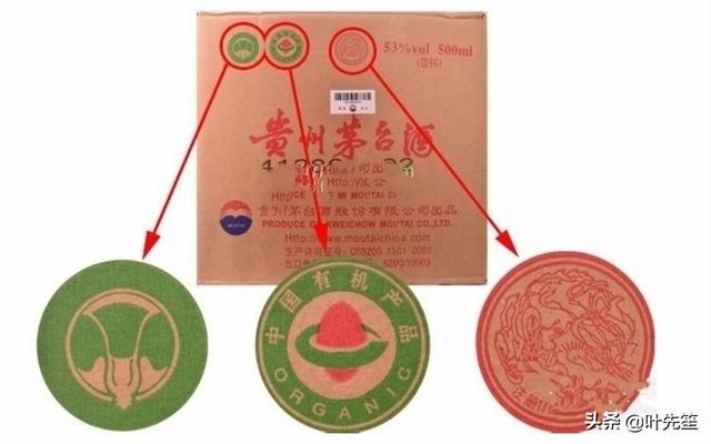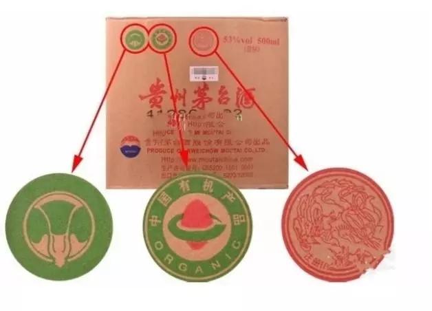 贵州茅台酒外箱上必备有下面图中的三个标志,缺一不可!图案色泽是均匀清晰的,而那些假酒的,均匀度不足,还是有点模糊。