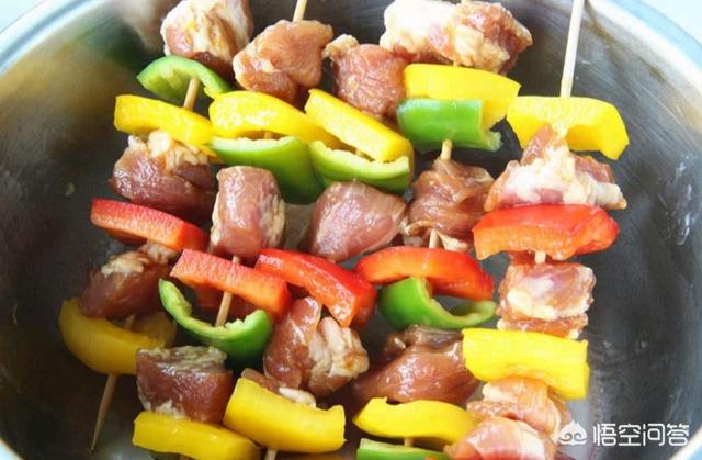 喜欢吃烤肉串的朋友们,周末我来给大家发福利啦,相信很多朋友们聚餐或是生日派对,都喜欢吃烤肉串吧,我今天分享一个最过瘾的吃烤肉串的方法,不需要烤炉,只要腌腌肉,把蔬菜穿在一起,放在烤箱里烤,就可以尝到美味。虽然只是几种常见的调料和配菜,但是吃起来还真的是“贵州烤肉”的味道,肉色红润,外焦香,里软嫩,五颜六色的彩椒,看起来让人很有食欲,还可以解决孩子不爱吃蔬菜的习惯哦。