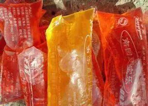 几毛钱一袋,各种味道,各种颜色,夏天来一袋冰水,一边游戏,一遍吸着冰水。