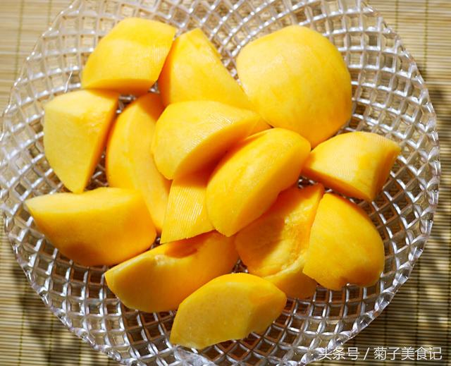 制作好的黄桃罐头在碗里垂涎欲滴有木有^_^