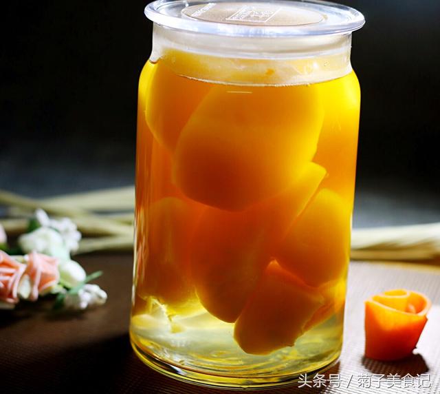 黄桃2~3个,准备一个密封罐(干燥不沾油呦)冰糖适量