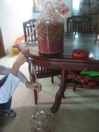 封存2个星期左右,有的人再过滤一遍,有的人还会下鸡蛋清来使它变得更清澈,但在我家都没有使用,我们不想多加任何一点点其他的东东,真正的无任何添加剂。整个制作过程25天左右可以喝,据说三个月到半年口感最好。