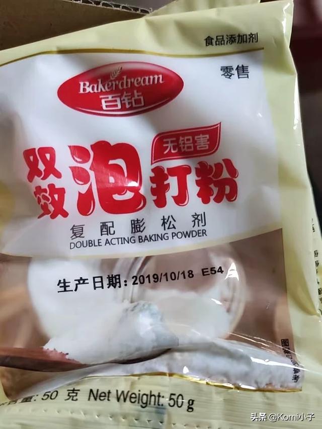 又叫泡大粉、发酵粉、发粉等等,英文名叫baking powder,简称B.P.,是一种白色的粉末,在一般的超市都能买到。它通过化学反应释放出二氧化碳气体,让蛋糕或者饼干在烤焙的时候体积膨胀起来。