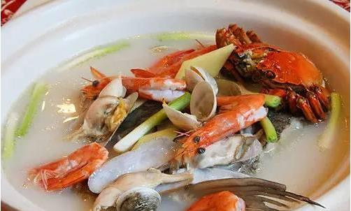 此菜名取海鲜的“鲜”和八仙的“仙”谐音,才有了大显神通的菜名。 八仙过海里有八种海鲜,分别是黄鱼、澳洲带子、蛏子、文蛤、梭子蟹、基围虾、乌鱼蛋和九肚鱼,再加上秘制的海鲜高汤蒸煮。把节瓜打成蓉放入汤中,用特有的清香味为海鲜汤提鲜。焯过水的海鲜和节瓜汤在一起蒸煮20分钟左右,这道八仙过海就能上桌了。
