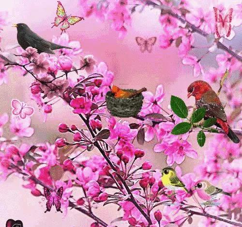 春风细雨谁心喜?红桃绿柳鸟叫啼。注:春天来到了,桃红柳绿,百鸟欢歌叫啼。