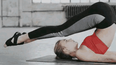 1、仰卧到垫子上,这个动作得是运动的差不多了才能练习的体式