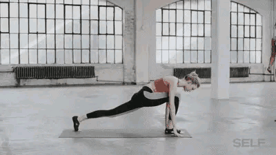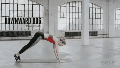 6、呼气将右手慢慢的落下去,回到下犬的姿势放松