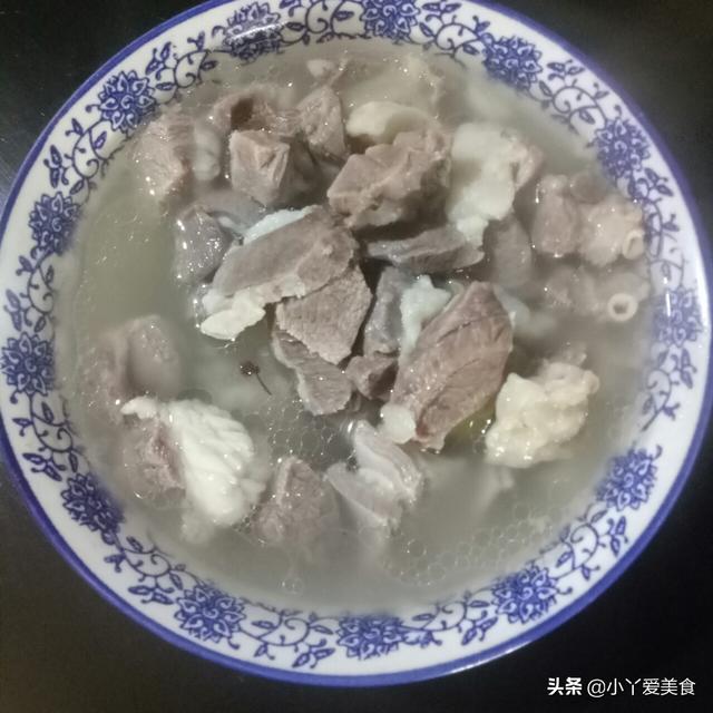 我用了最简单的烹饪方法,炖熟的羊肉可根据自己的喜好加入白萝卜、红萝卜、土豆、山药等味道更好不油腻,吃的更加有营养还健康喔!