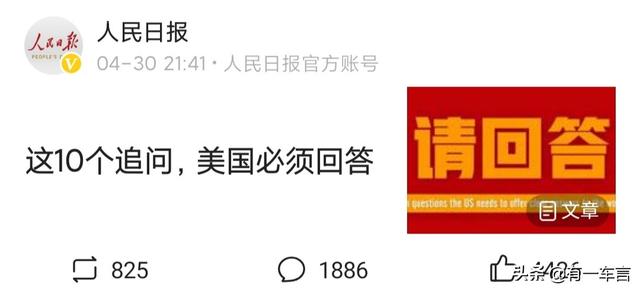 而在《人民日报》发表的文章《这10个追问,美国必须回答》里面,有几个追问很明显病毒指向美国: