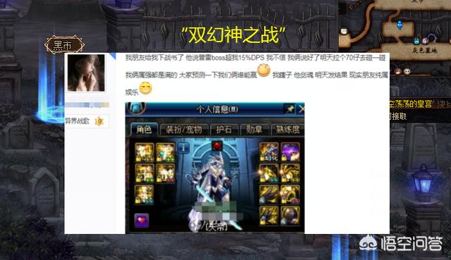 故事是这样的,剑魂和天帝在争论谁的伤害更高,争论不出结果,那么实战就是最好的答案咯,于是两位玩家打赌,在打普雷boss伊希斯的时候,剑魂的DPS要比天帝高出15%,这足以说明剑魂玩家的自信,那天帝当然也就不开心了,于是愉快接受了这个赌约。