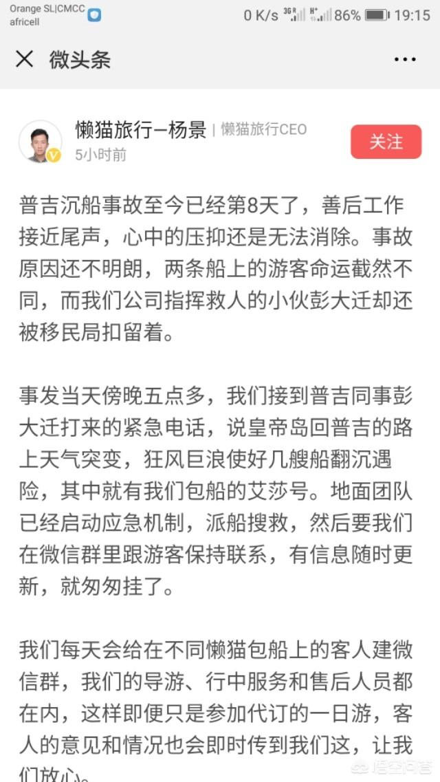 懒猫旅行估计很多人是从这次泰国普吉岛翻船事故中了解,懒猫ceo也在微头条上发布事因