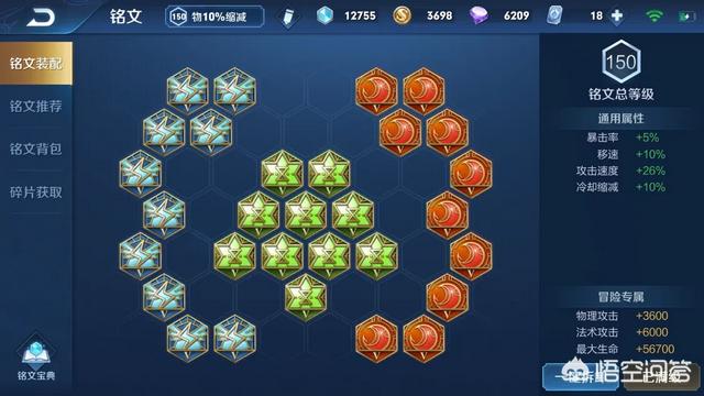 如下图,是奔波流的装备及铭文