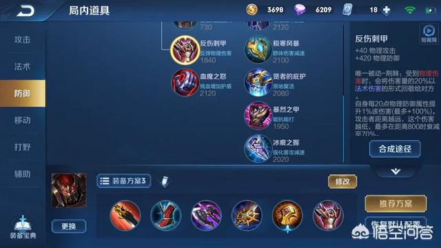 然后是反甲,其实小编觉得,对于有把握的玩家,反甲完全可以换成,无尽战刃,这样这套出装加上典韦的被动,后期的输出爆炸,加上打野经济领先,完全可以1v5,不怂对面!