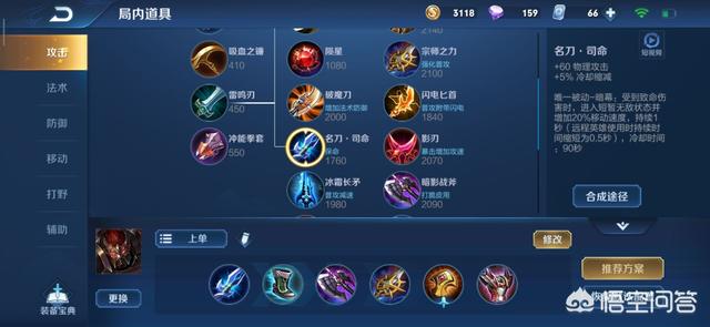 出装推荐:追击刀锋、抵抗之靴、黑切、宗师之力、风灵纹章、反伤刺甲(后期打野刀换名刀或者魔女斗篷)。